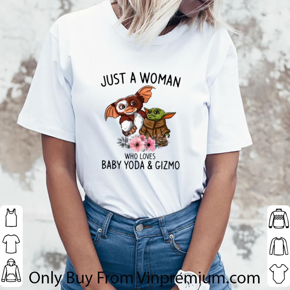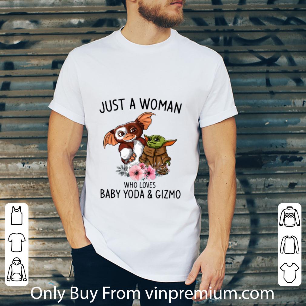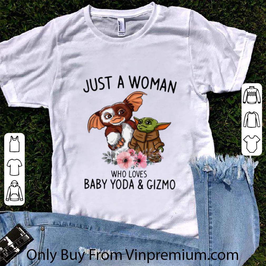 Premium Just a woman who loves Baby Yoda and Gizmo shirt, Hoodie, Sweater, Longsleeve T-Shirt For Men and Women
